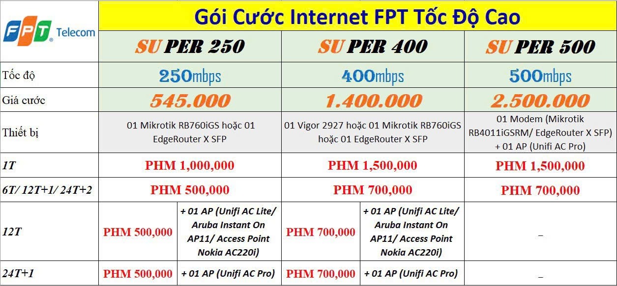 | SpeedX10 Pro | 10 Gbps | 1.699.000đ | FPT Play VIP + Box |